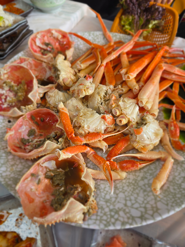 대게는 밖에서 쪄서내어주십니다. 대게 전문점 아니고 횟집, 진입니다. 가게 앞에 찜기를 두고 쪄내니 지나면서 대기하며 보는 소소함이 있는 것 같아요.