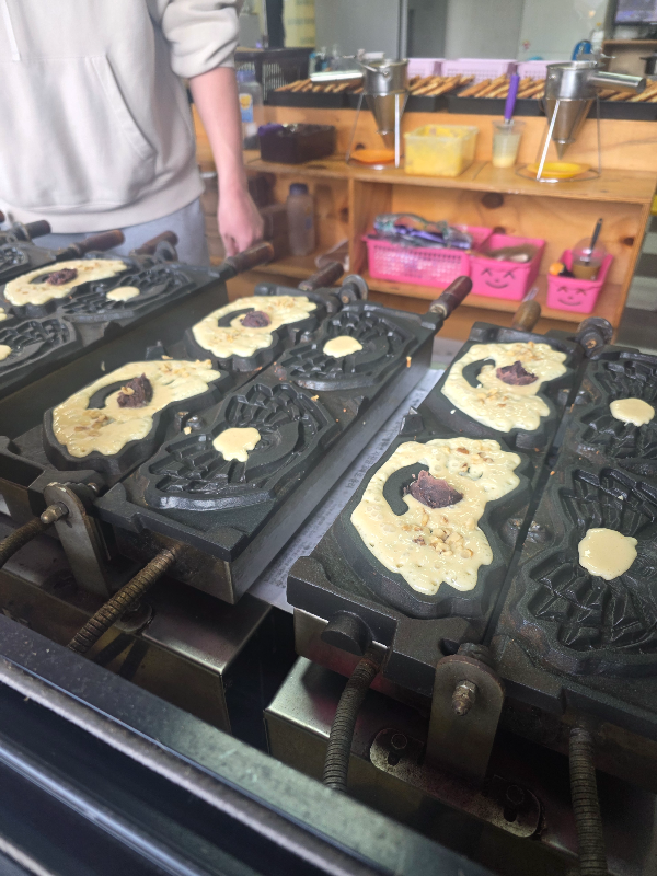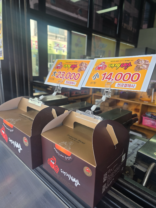 구경 마치고 공원 입구 대게빵 작은 상자 하나구입, 6명이니 한 마리씩 맛은 3가지입니다.