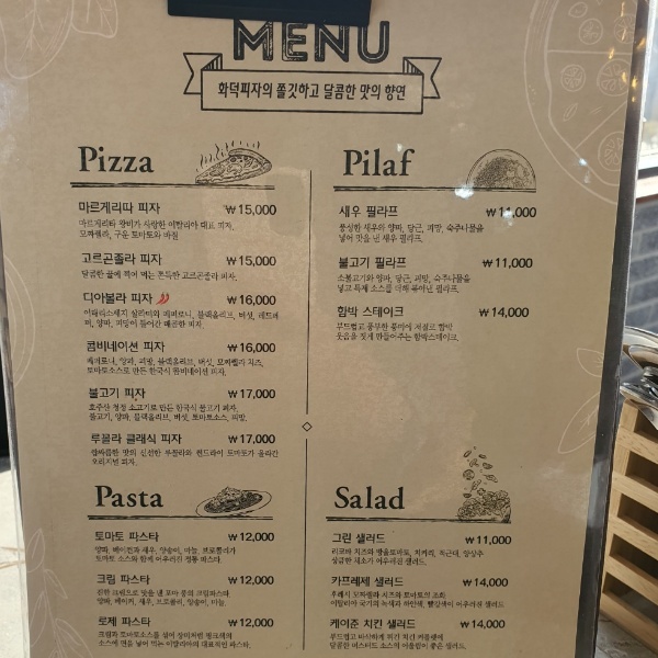 주홍색 샌드위치 판넬건물 2층에 자리하고 있어 이태리다락방으로 지었나 봅니다. 위치가 번화한 곳도 아니고 도착시간은 딱 브레이크 타임인데 반갑게 맞아주셨습니다. 브레이크 타임 안내는 없었습니다.
