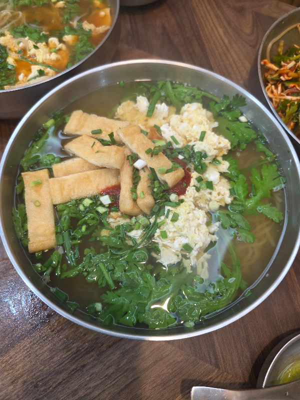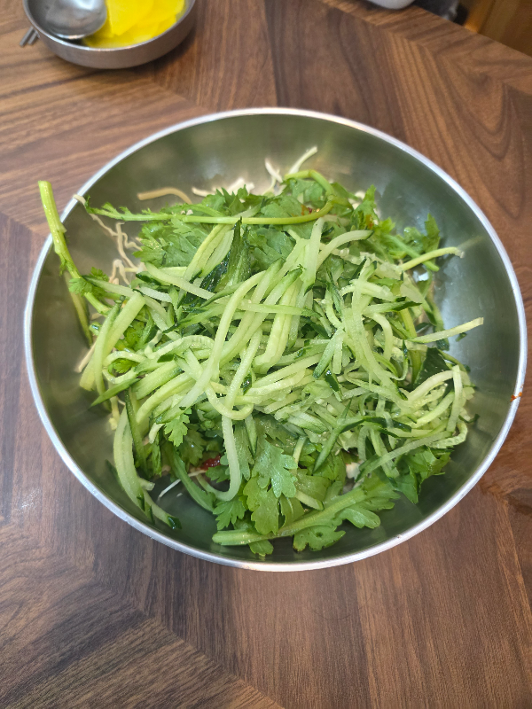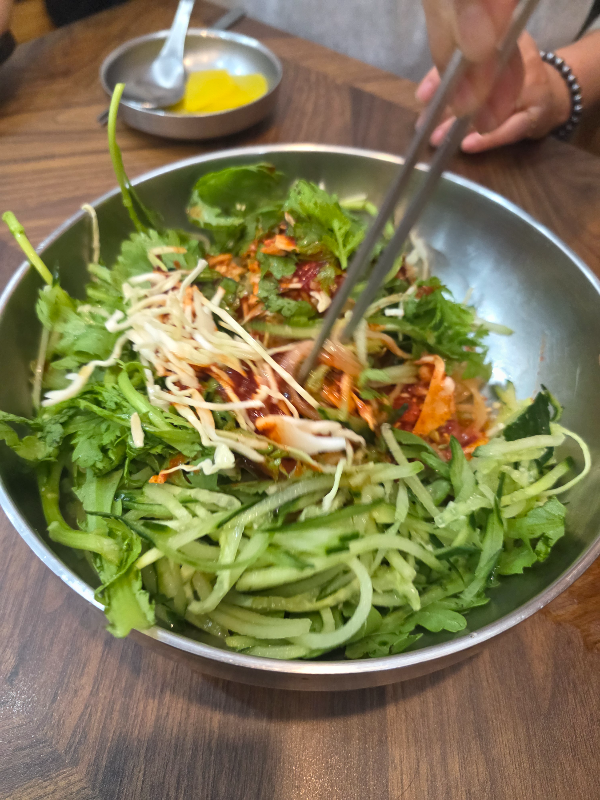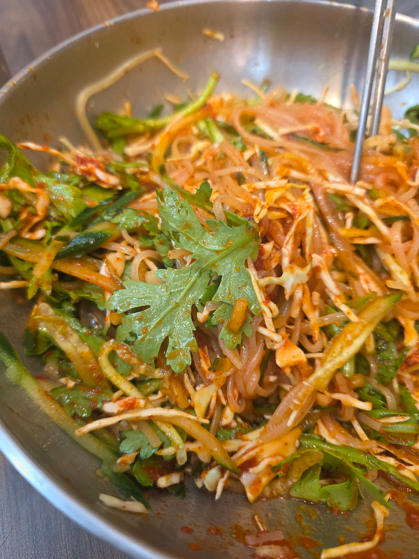비빔쫄면에 쑥갓 많고 면이 많이 질기지 않아요.