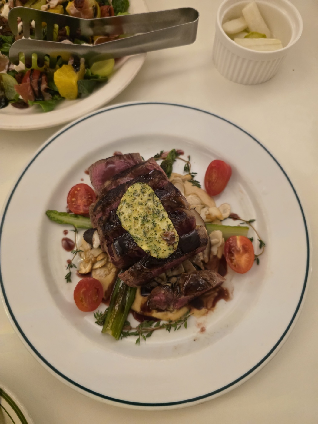 모임에서 갈 때마다 블랙앵거스 안심스테이크 세트 3~4인용만 주문했어요. 여기에 한국인은 밥심이니까 리소토도 하나 추가해서 먹었습니다. 평일 퇴근 후 많이 시장하고 소식좌들은 없는 모임이에요 4인 식사 마치고 나면 다들 배부르다고 합니다.