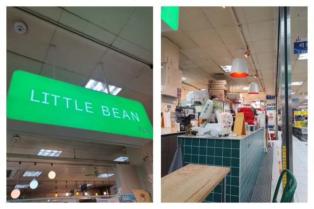 수제비와 잔치국수 맛있게 먹었으니 식후 커피는 국룰입니다. 장금이 국수집 옆에 있는 녹색간판이 눈에 띠는 리틀빈입니다.