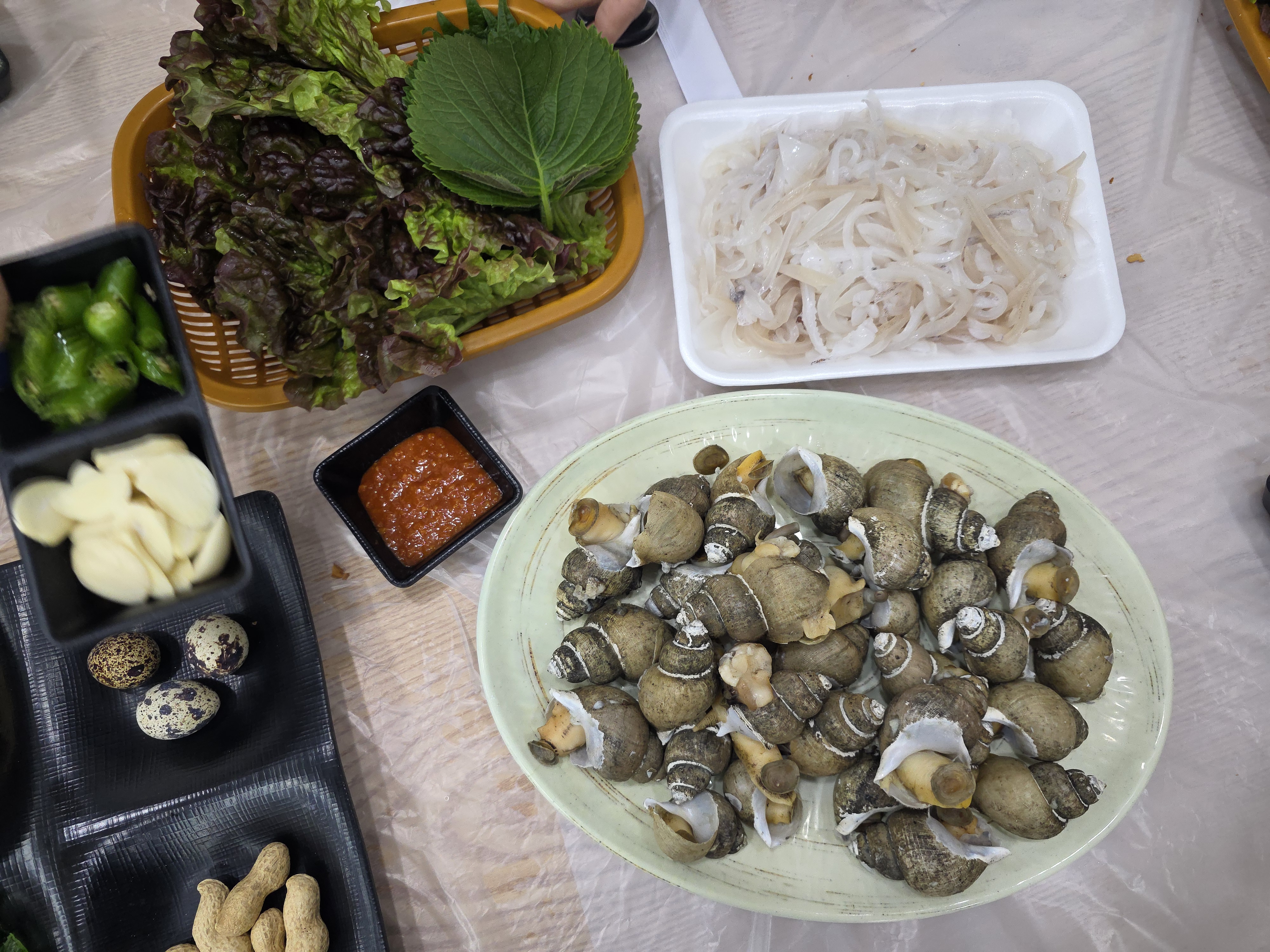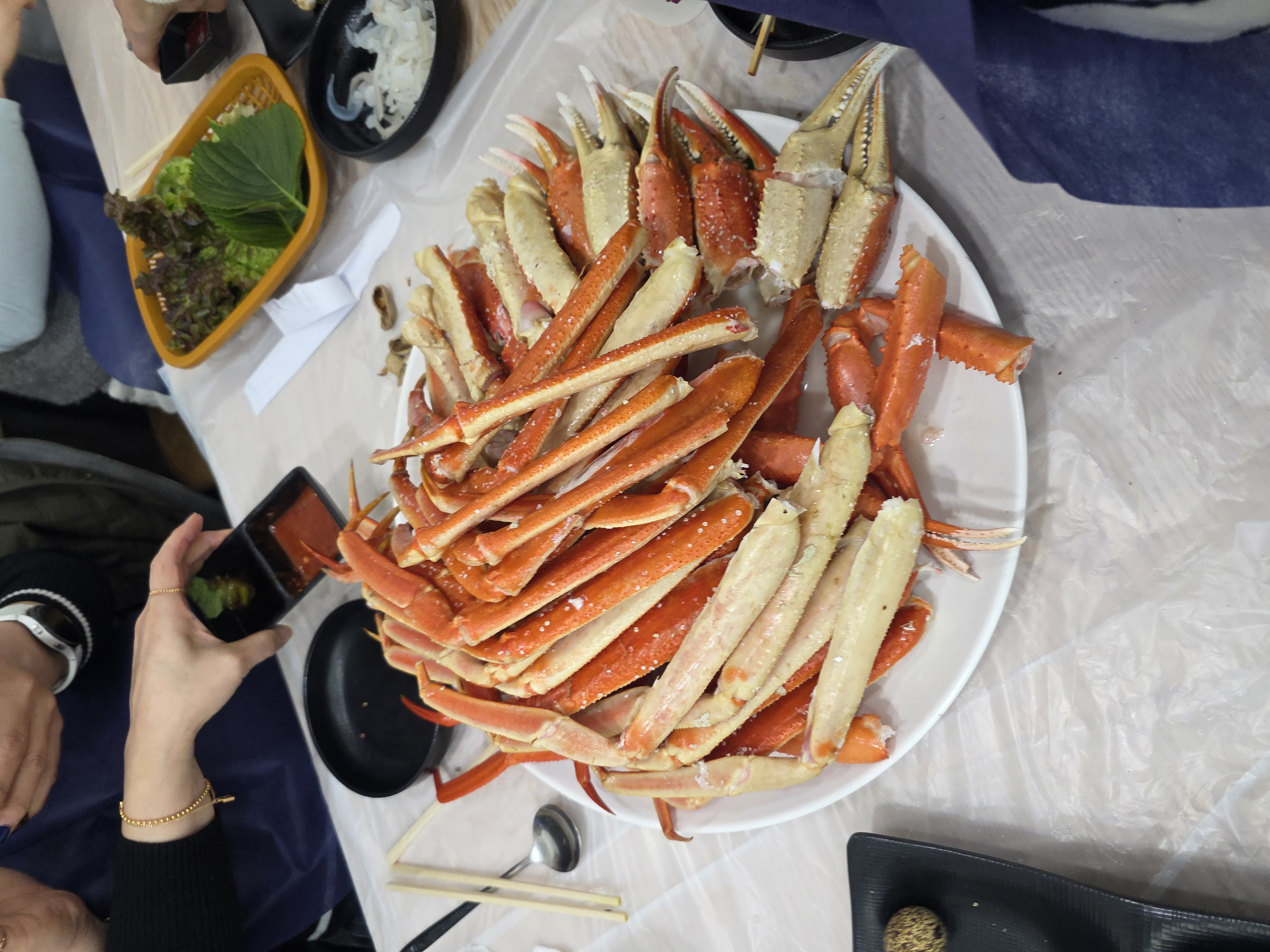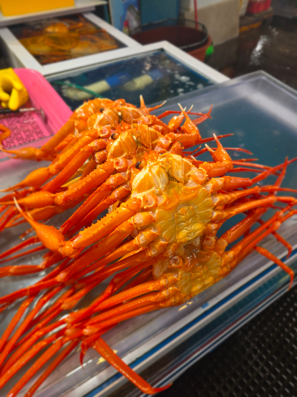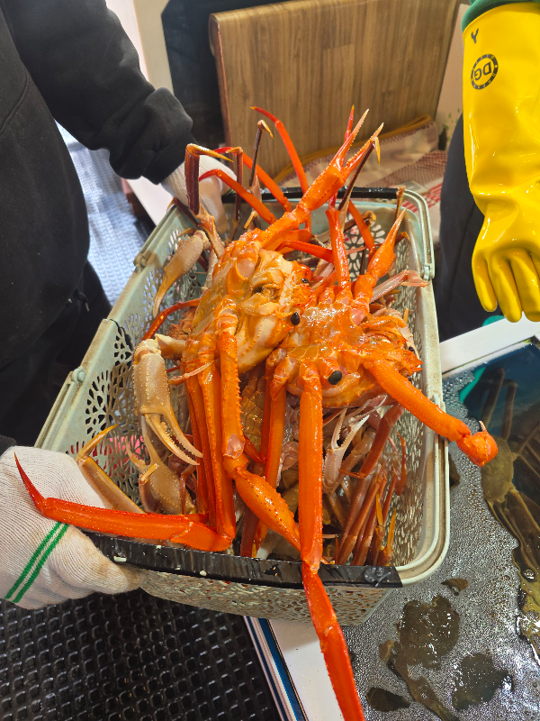10시 반 예약하고 도착은 10시 10분. 영남수산 가서 대게 고르고 오징어 썰고 나중에 구입할 해산물 구경하고 오니 대게 찜 져서 내어주십니다. 이후로 계속 손님 들어오시고 가게밖도 복잡해집니다.