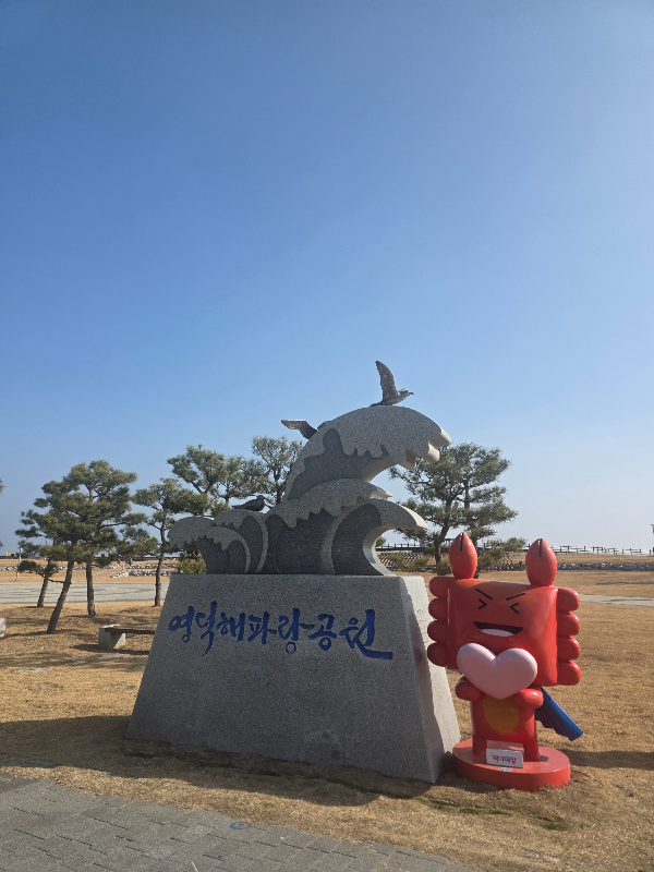 훈이대게에서 식사하고 바다구경도 하고 부른 배도 꺼지도록 공원 산책 나섭니다. 덩그러니 대게만 있을 때 와보고는 공원에는 오랜만에 방문이에요. 아기자기 포토존도 많이 만들어두고 쉬어갈 수 있는 벤치도 많이 있어요.