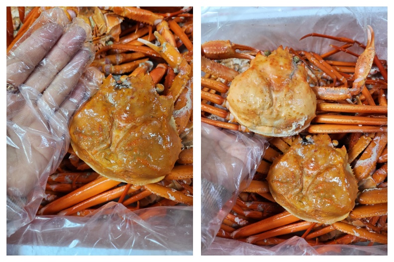 자숙홍게는 주문해서 바로 먹어보면 짜고 비린맛이 살짝 날 수 있어요. 쪄서 보내오는 홍게는 배송을 위한 아이스팩으로 차가운 상태이니 찜기에 물올려 한 번 더 쪄서 먹으면 비린맛도 없이 촉촉하고 부들부들합니다.