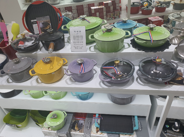 한편에는 조리용 냄비와 팬을 진열해 놓았어요. 괜히 뚜껑 한번 열어보고 지나갑니다. 조리도구도 있으니까 함께 보면 좋아요.
