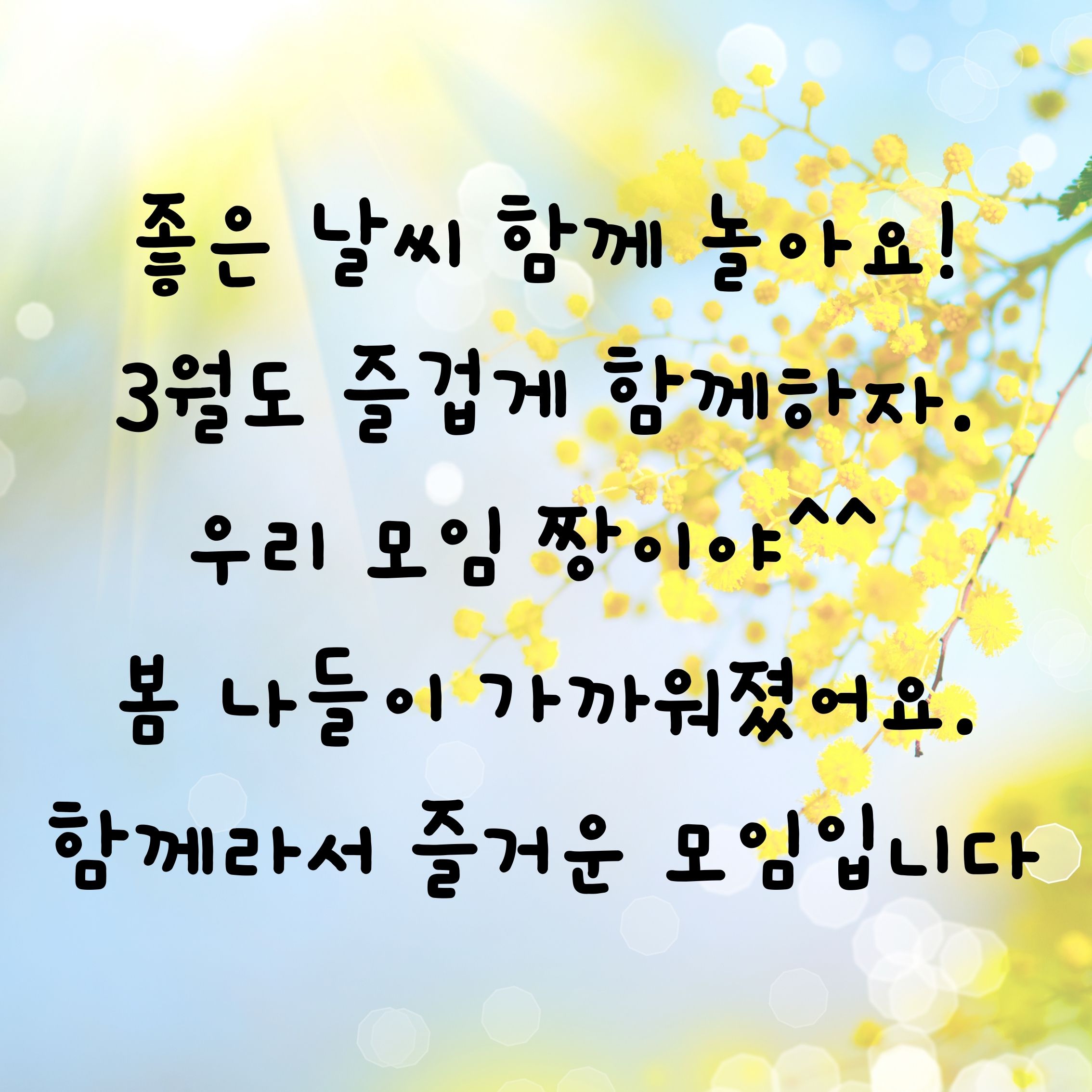 좋은 날씨 함께 놀아요 / 3월도 즐겁게 함께하자 / 우리 모임 짱이야 / 봄 나들이 가까워졌어요 / 함께라서 즐거운 모임입니다 / 계속 재미있게 놀아요